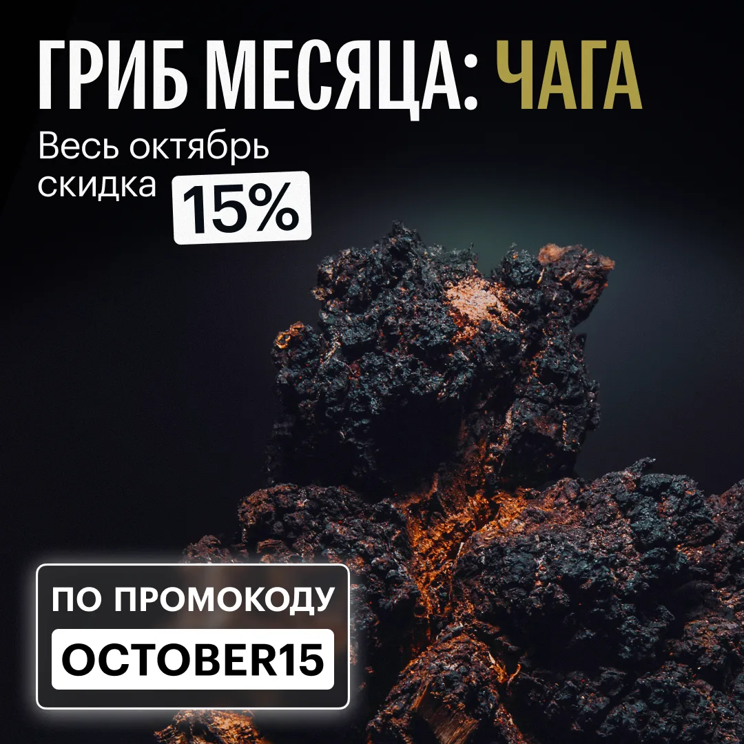 В составе — высококачественное сырье из дикорастущих и культивируемых грибов и лекарственных растений, прошедшее специальную обработку для усиления терапевтического эффекта.